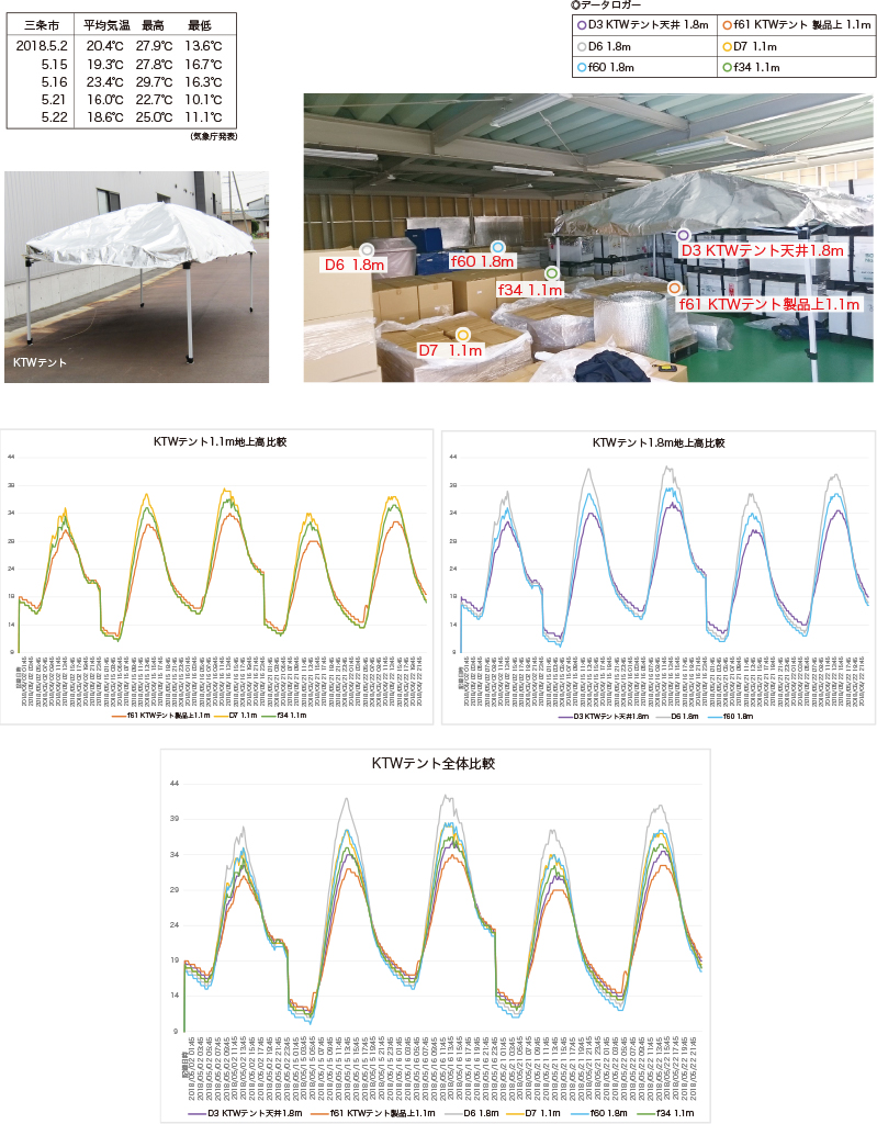 キープサーモウォール/施工なし部分と施工部分の荷物の表面温度比較