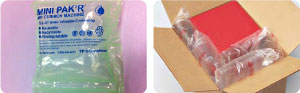 ミニパッカー(MINI PAK'R)で使用する緩衝材フィルムは、酸化により分解され、ゴミとして残る事がなく自然環境への負担を軽減できる素材です。分解性緩衝材は、企業のイメージアップにも貢献します。